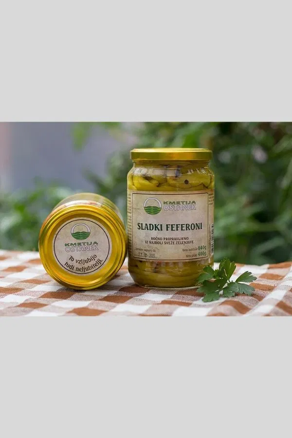 Sestavine: sladki feferoni, sladkor, sol, kis, voda, cel poper.